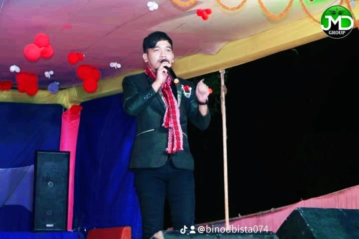 सानो मान्छे,ठुलो स्टेज,चर्चित कलाकार खुमन अधिकारीको अगाडि मैले गीत आएको त्यो पल सम्झदा आफैलाई अचम्म लाग्छ । बिष्टले भने,कक्षा ६ मा पढ्दै गर्दा गाउँमा कार्यक्रम भयोे, अलि अलि गीत गाएको गाउँमा सुन्नु भनेको थियो । विनोदलाई गीत गाउन लगाउन पर्छ भनेर त्यो दिन गीत गाउँले अवसर मिल्यो त्यो दिन नै मेरो गीत संगितको पहिलो पाइला हो । त्यस पछि धेरै ठाउँमा अवसरहरु आउन थाले,विद्यालयका हरेक अतिरिक्त कार्यक्रममा गीत गाउँने अवसर मिल्न थाल्यो । विनोदले तिमि गीत गाउँ भन्दै प्रेरण र हौसला दिने बिक्रमबाबु दाईलाई पनि सम्झना चाहान्छु । एस.एल.सी पछि गीत संगितमा केही गर्नु पछ भनेर काठमाण्डौ गए,उमेर सानो,अपरिपक्कताले गर्दा पनि ६ महिनामा नै बुटवल फर्किए । बुटवलमा पनि त्यति सजिलो थिएन र छैन पनि । संर्घषका दिन लुम्बिनी रोघि घरबाट सुरु भयो । केही समय त्यसैमा उद्घोषण तथा गीत गाउने काम गरे,मैले काम गरेको छोटो समयमा नै रोघि बन्द हुन पुग्यो, त्यस पछि गोदौली रोघि घरमा काम गर्ने अवसर मिल्यो । रोधिले स्टेज कार्यक्रमहरुमा जाने बाटो खुलायो । यसै क्रममा झ्याउरे गीत निकाले,पहिलो गीत नै राम्रो चल्यो,स्टेजमा माग बढ्न थाल्यो , त्यस पछि दशै तिहारको गीत निकाले र अन्य गीतहरु आउने क्रममै छन् ।